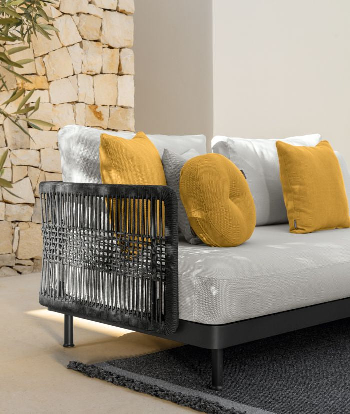 Le canapé de jardin Slam incarne l'élégance et la légèreté avec ses lignes équilibrées et épurées. Ses finitions en corde synthétique tressée lui donnent une esthétique raffinée. Ses coussins amovibles garantissent une assise confortable en toute circonstance.