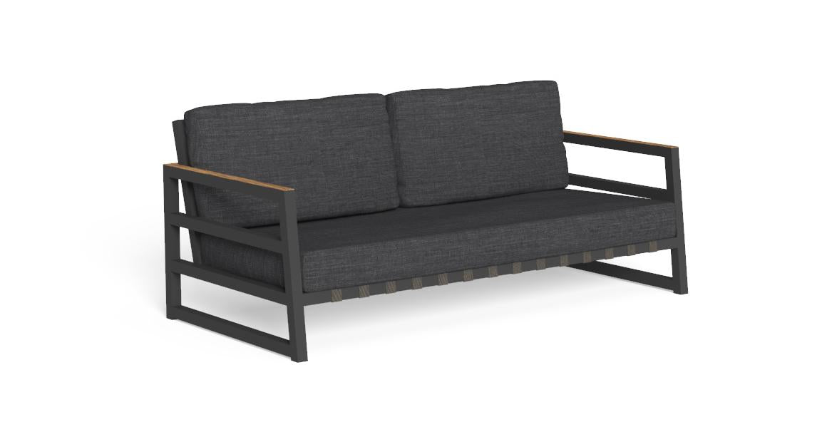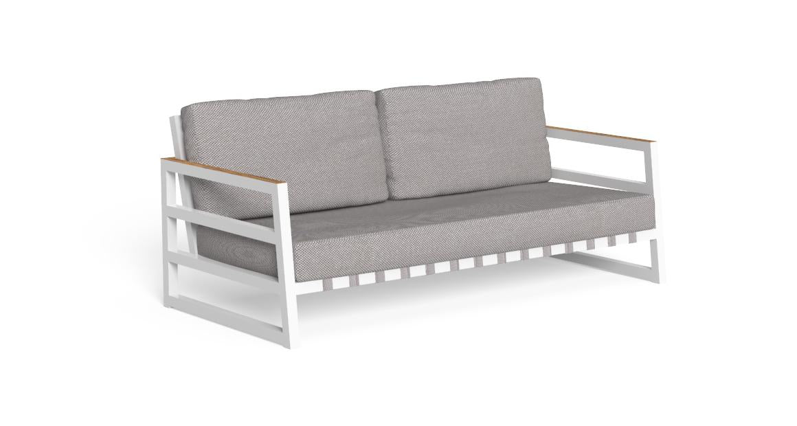Le canapé d'extérieur Alabama Alu vous enveloppera de confort. Sa structure en aluminium est accompagnée par des accoudoirs avec lattes en teck. L'assise et le dossier reposent sur des sangles élastiques. La coussinerie en tissu résistant aux intempéries offre un rembourrage en mousse quick dry foam pour un bien-être optimal.