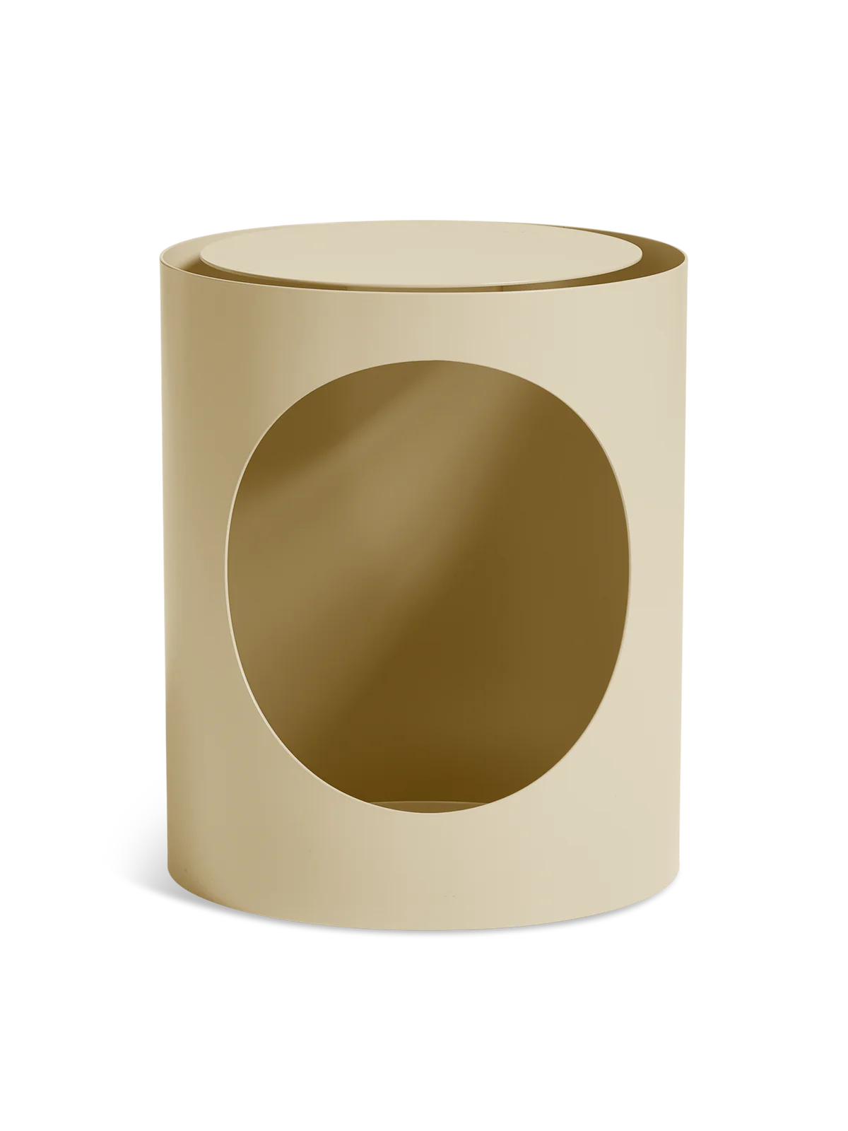 La méticulosité de la conception se révèle dans la forme circulaire ingénieuse, où une section de la base cylindrique est magistralement transformée en un plateau fonctionnel, optimisant l'espace et la matière avec une élégance et une intelligence inégalées.