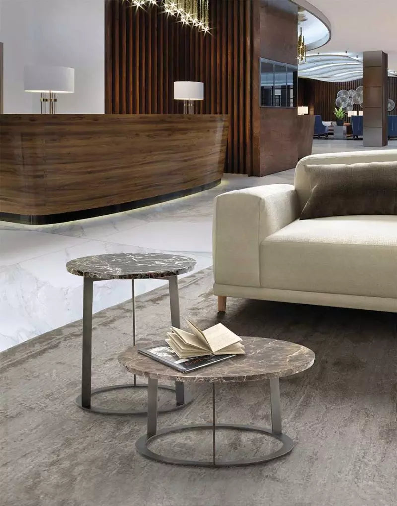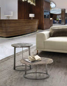 La table basse pied rond Liberty : Le mariage subtil des matières nobles