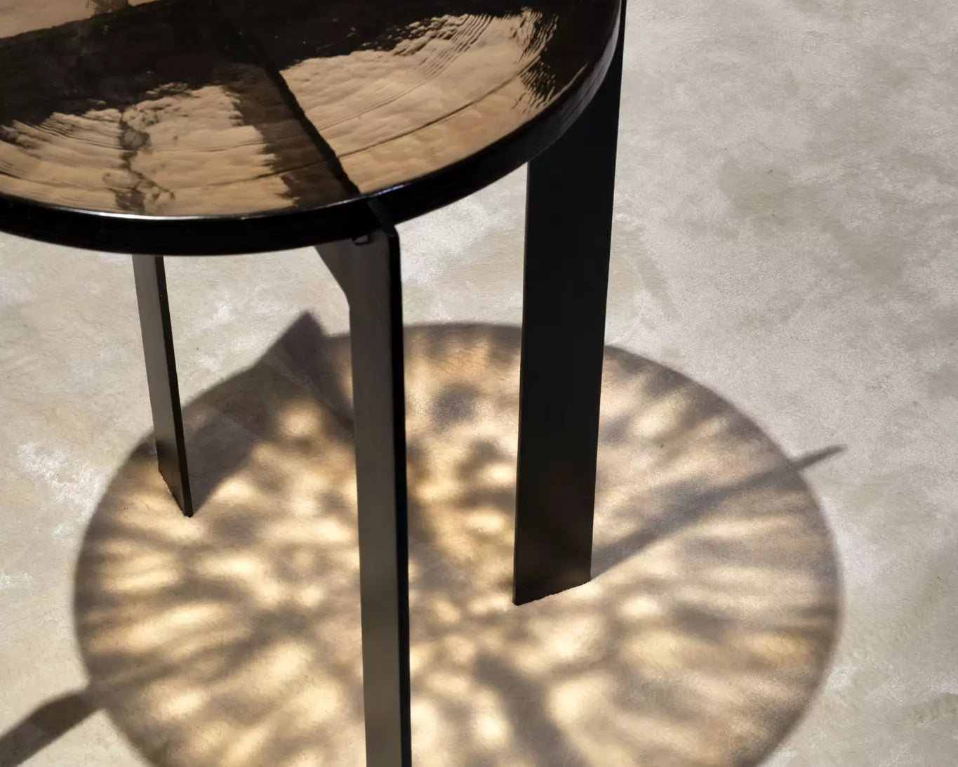 Le voyage à travers cette collection vous fera également découvrir des pièces où le métal noir rencontre des plateaux en verre pour une expression contemporaine audacieuse. L'aspect éthéré du verre, combiné avec la dureté sophistiquée du métal, crée une harmonie qui séduit les sens. Ces tables sont plus qu’un lieu pour poser vos objets; elles deviennent une célébration visuelle et une invitation à s'arrêter et à admirer.