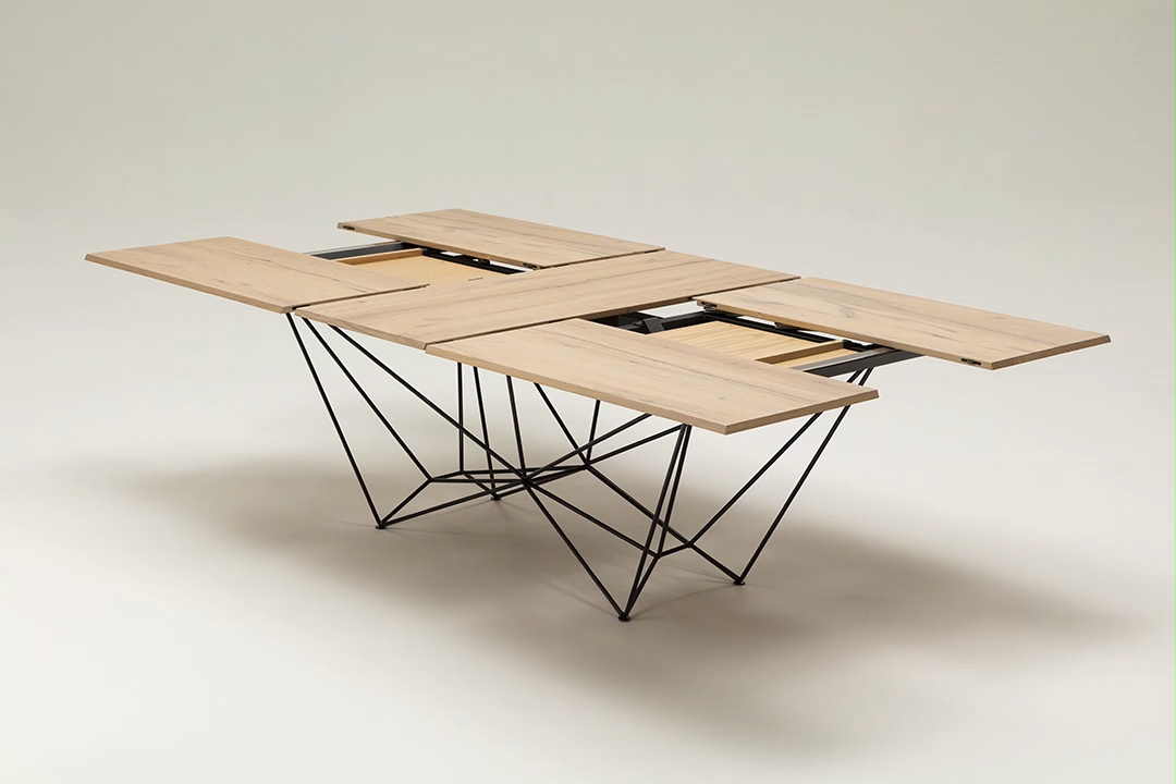 Laissez-vous emporter par la transformation que cette table apporte à votre intérieur. Son mécanisme d'ouverture breveté, composé d'un chevauchement parfait de joints solidement maintenus, démontre le génie derrière chaque conception Fil 8. Le design sophistiqué des pieds confère au produit force et personnalité, créant un point focal inoubliable dans votre salle à manger. Lorsqu'elle est complètement ouverte, la marqueterie centrale se dévoile en toute splendeur, offrant une surprise visuelle unique.