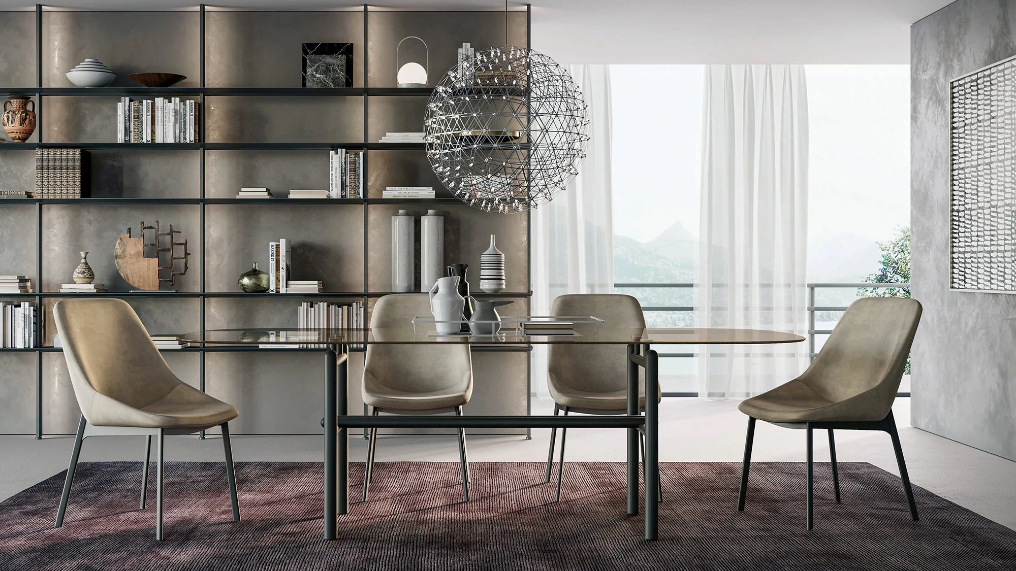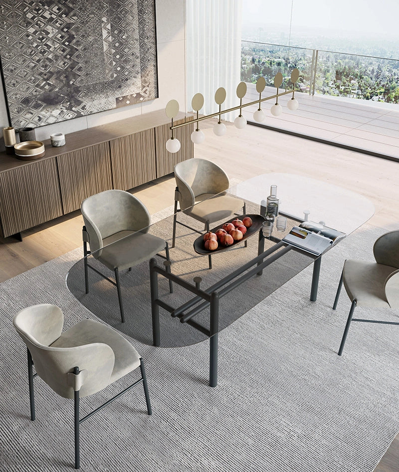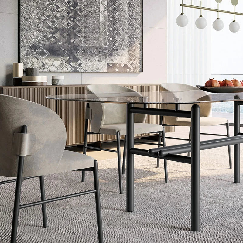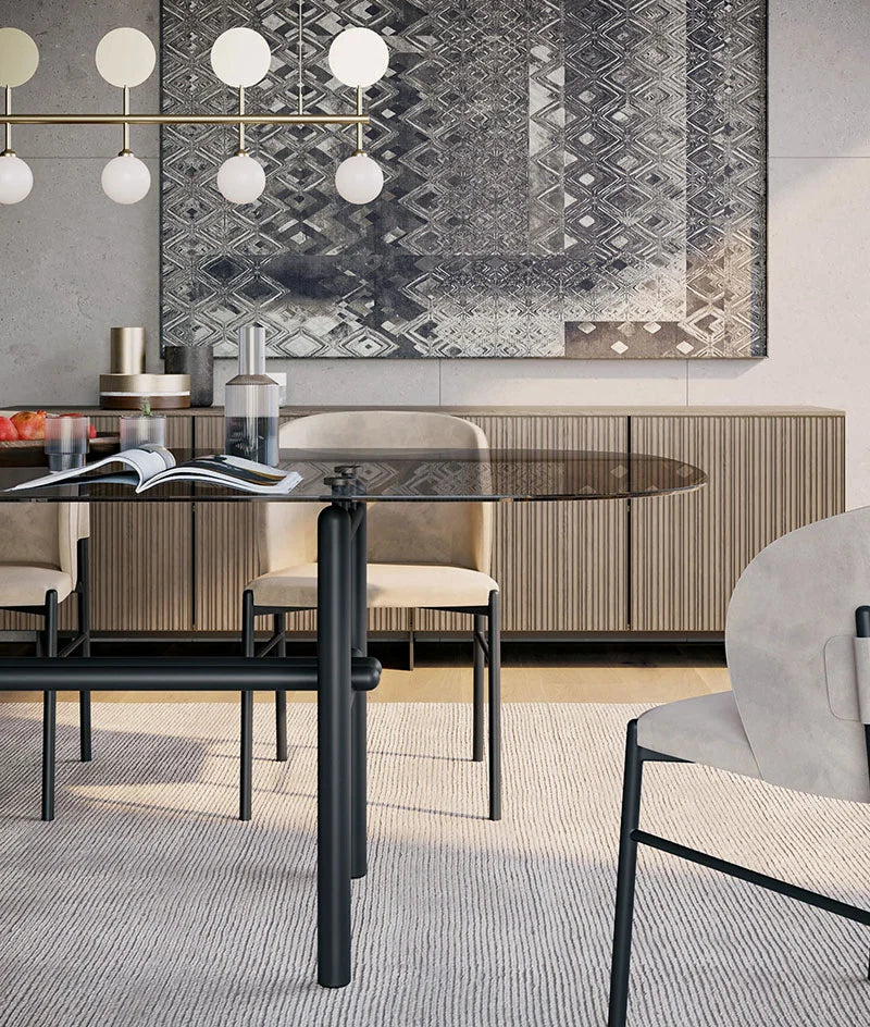La qualité supérieure de la table Supernova est assurée par le savoir-faire artisanal de nos maîtres artisans. Le plateau en verre fumé, disponible en finitions bronze transparent, gris ou laqué, repose sur une base rigoureuse de tubes ronds terminés par des têtes arrondies. Cette conception innovante donne à la table une forme rectangulaire convexe qui adoucit l'ensemble et rend chaque repas plus agréable.