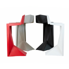 Elle se caractérise par son ergonomie géométrique rigoureuse définie par ses facettes délimitées par des lignes brutes et épurées. Ses formes ont été pensées pour une assise confortable et la possibilité de facilement être empilable avec d’autres chaises de ce type.