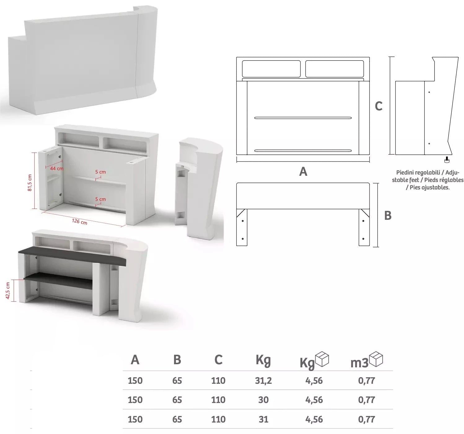 - 65x65x110 cm (set de 2) + 150x65x110 cm